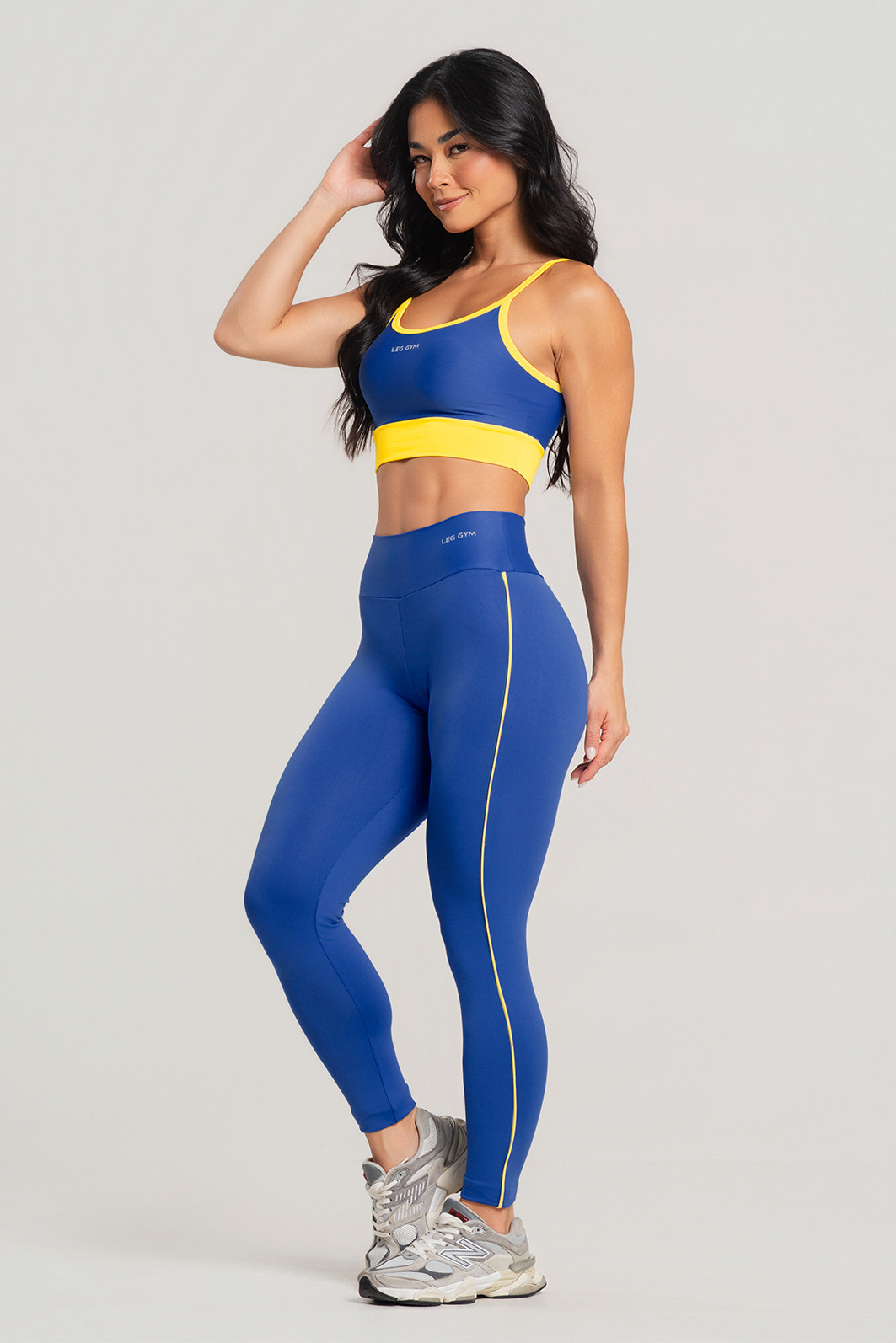 Compressão média a alta, valorizando as curvas e mantendo liberdade nos movimentos.